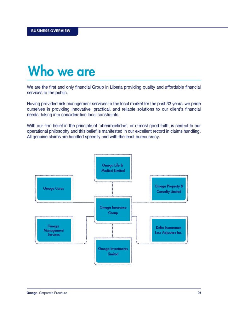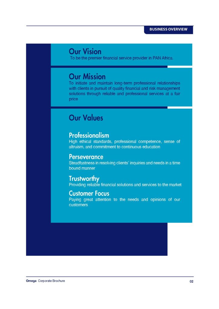 Omega Insurance Company was established in 2007 to provide the general public with the most often needed financial services in insurance. The company was incorporated on August 10, 2006. Registered by the Ministry of Commerce on February 26, 2007. The company is authorized to underwrite both life and property and casualty or general insurance. Omega Insurance Group Limited mission is to initiate and maintain long-term professional relationships with clients in pursuit of quality risk management solutions through reliable and professional underwriting at a fair price. The company’s firm belief in the principle of “uberimaefidae” or utmost good faith, is central to its operational philosophy and this belief is manifested in its excellent record in claims handling. In November 2018 the company name was changed from Omega Insurance Company to Omega Insurance Group Limited.